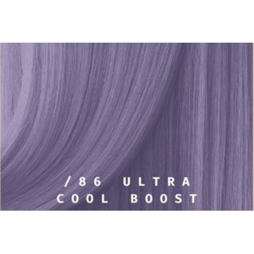 Per il colore /86 Ultra Cool Boster può essere utilizzato per intensificare la neutralizzazione dei sottotoni caldi rossi/ aranciati. Aggiungere da 1/5 gr a 30 gr di tonalizzante e miscelare con attivatore in rapporto 1:2
