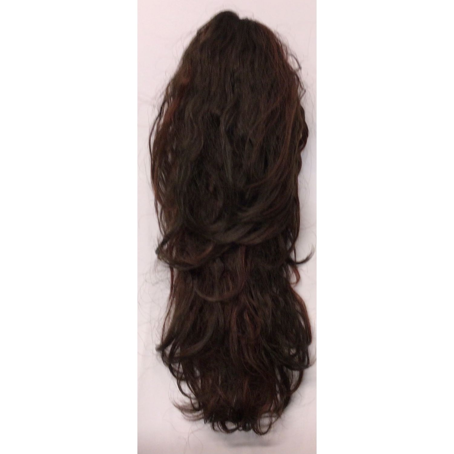 Coda frisèe in capelli sintetici con pinza doppio look.