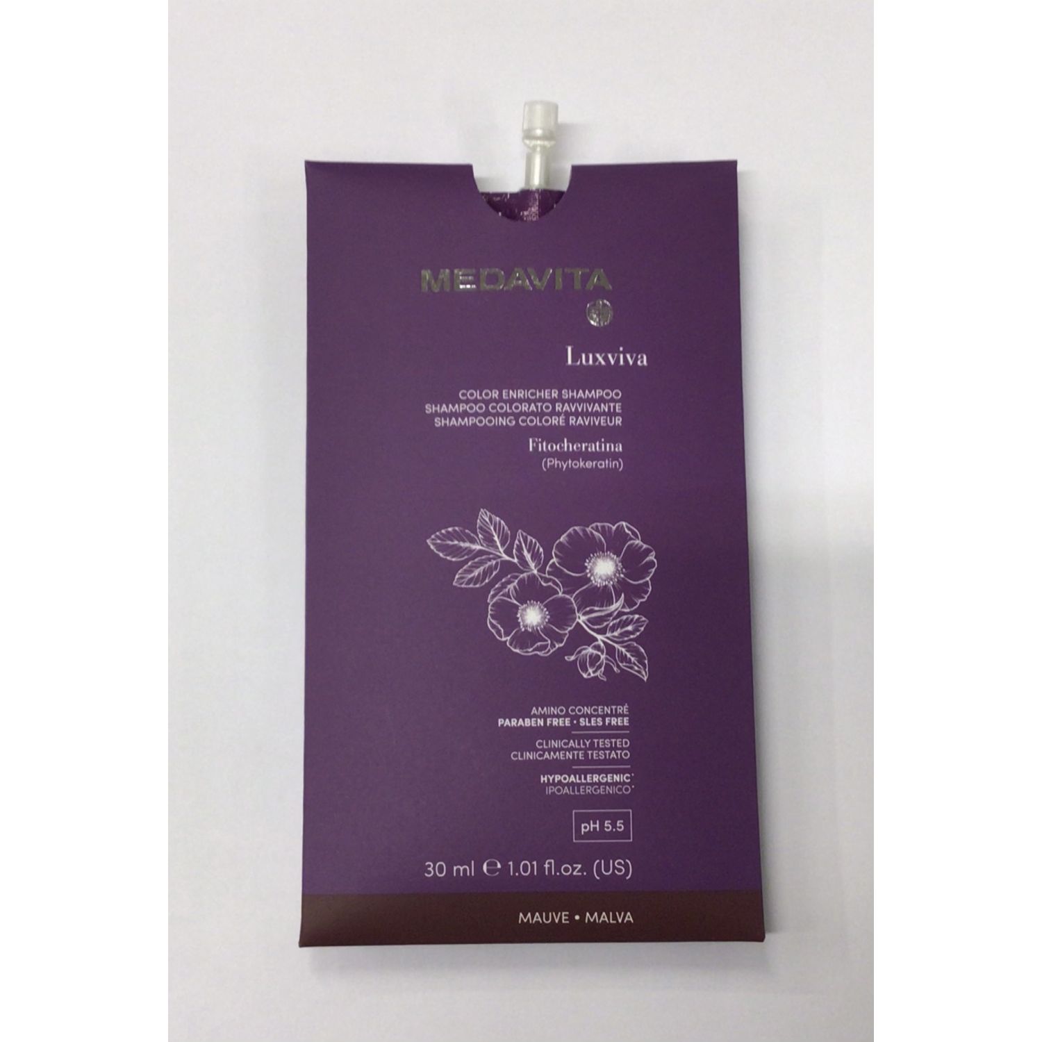 Modo D’ Uso: Diluire con acqua e distribuire uniformemente. Detergere e tenere in posa 5/10 minuti. Risciacquare con cura. Eliminare l’ acqua in eccesso e proseguire il trattamento con Luxviva Maschera acidificante post color.