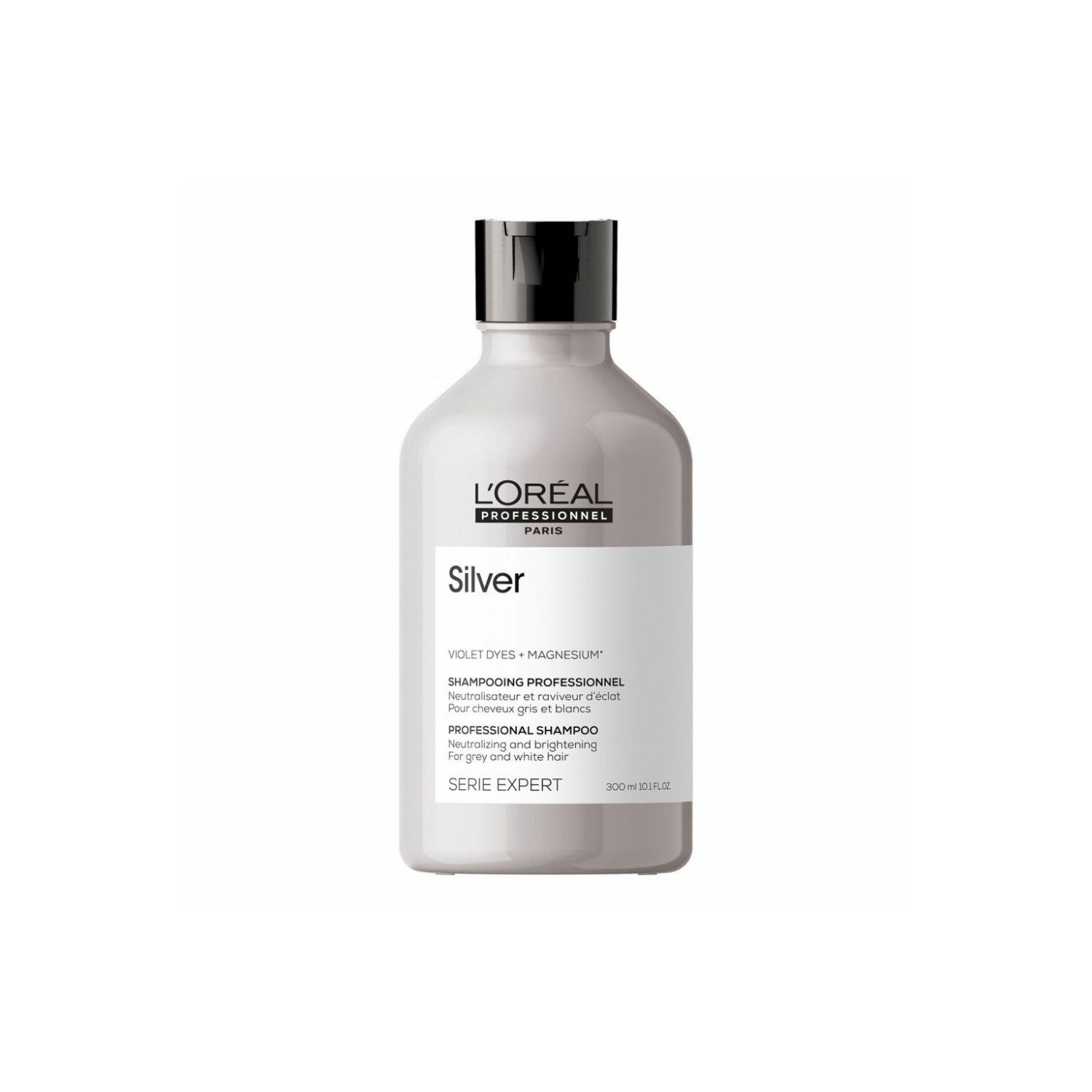 Lo shampoo Silver elimina i toni gialli e ripristina la tonalità naturale dei capelli grigi o decolorati.